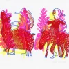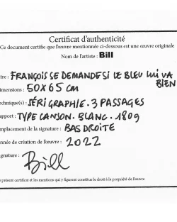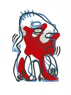 Sérigraphie – 3 passages – bleu, rouge et noir