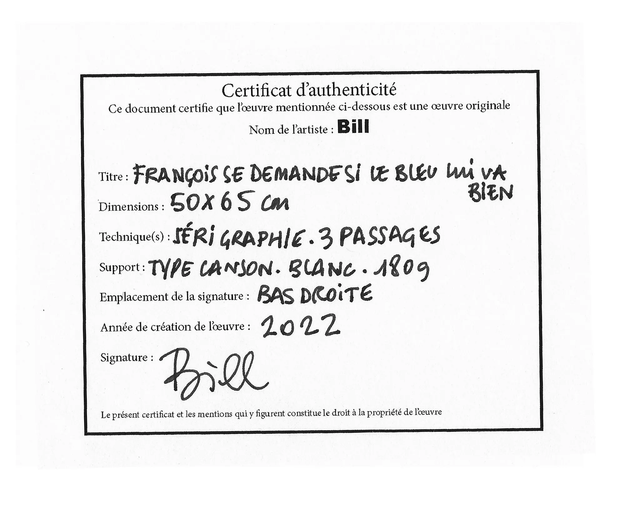 Bill est ma seconde identité, celle donnée pour rire et par amitié ...