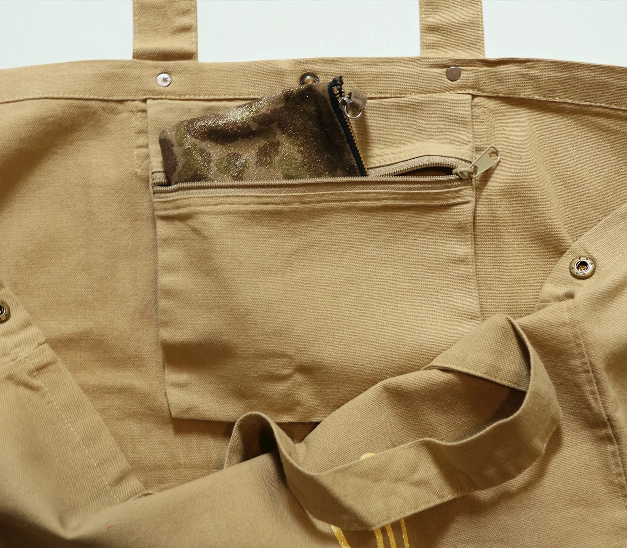 Sac cabas sable – flocage byBill jaune pailleté Poche intérieure coton bio