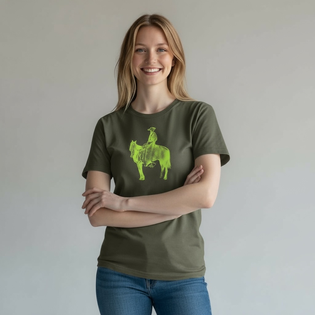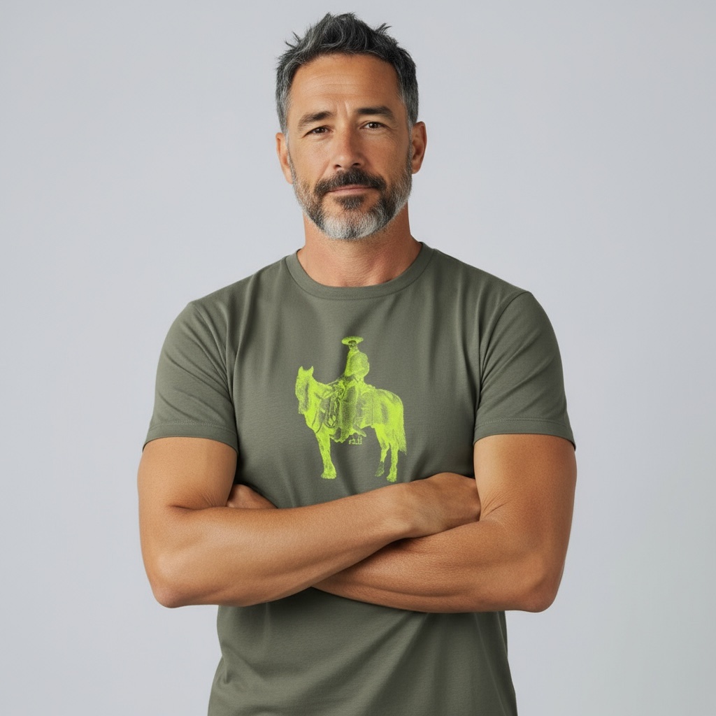 Tshirt kaki – sérigraphie jaune fluo 100% coton biologique