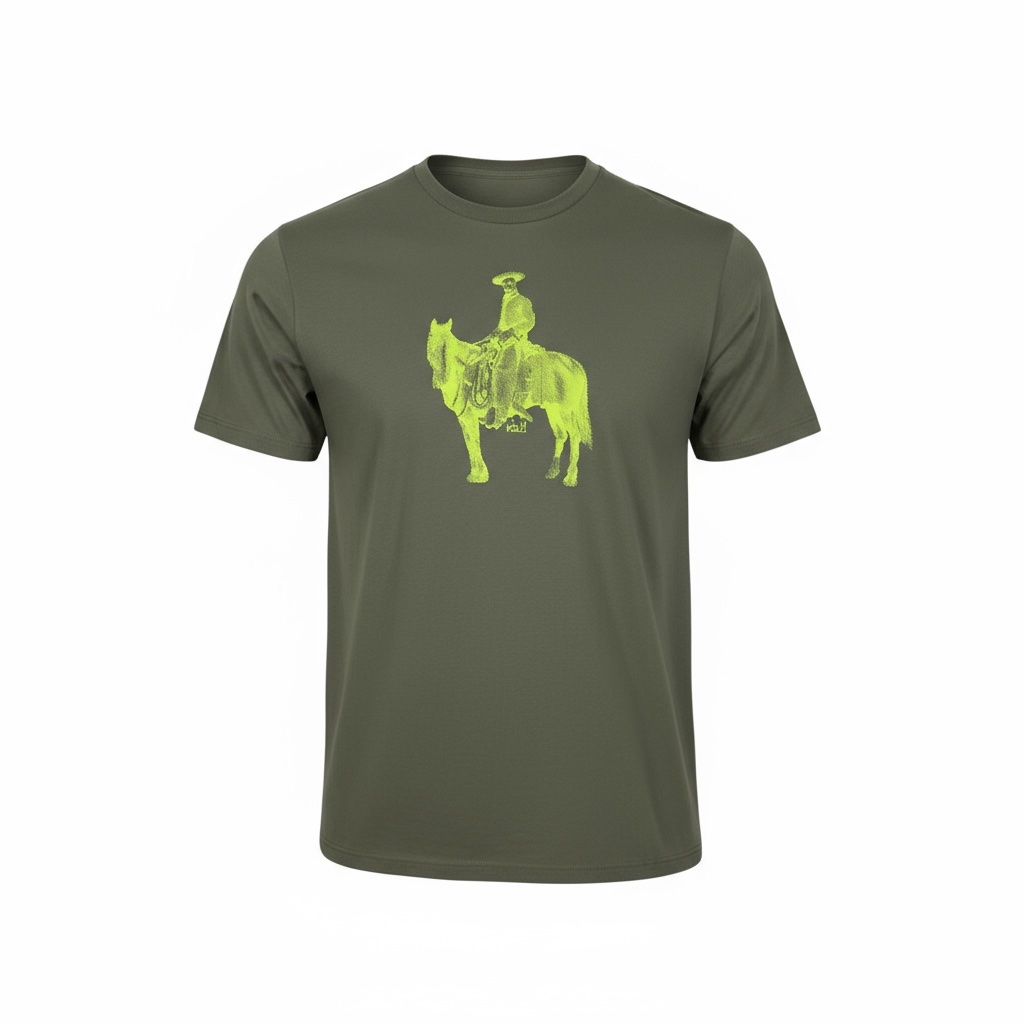 T-shirt kaki sérigraphie jaune fluo
