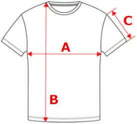 | Mesures en cm | A largeur poitrine | B Hauteur totale | C Longueur manche |